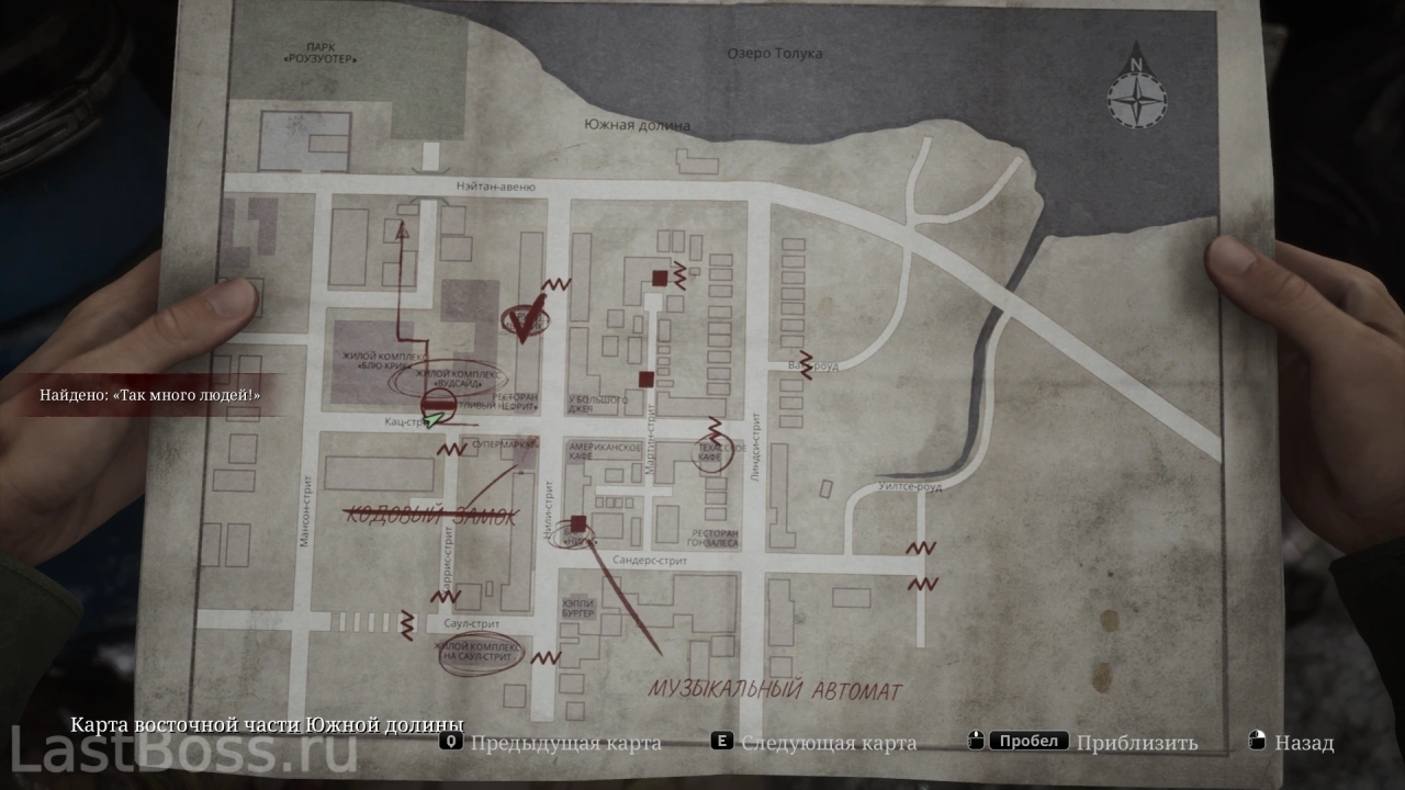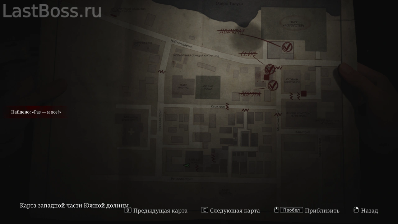 В западной части Южной Долины южнее парка Роузуотер находится автосервис, сначала закрытый. Под одной из дверей есть домкрат без ручки. Если пройти несколько кварталов западнее по Нэйтан-авеню, можно найти ручку от домкрата в машины на парковке за заправкой. Использование ручки издаёт громкий звук и привлекает монстров, но после этого можно полутать гараж и забрать фотографию с красного ящика для инструментов у одного из подъёмников для машин.