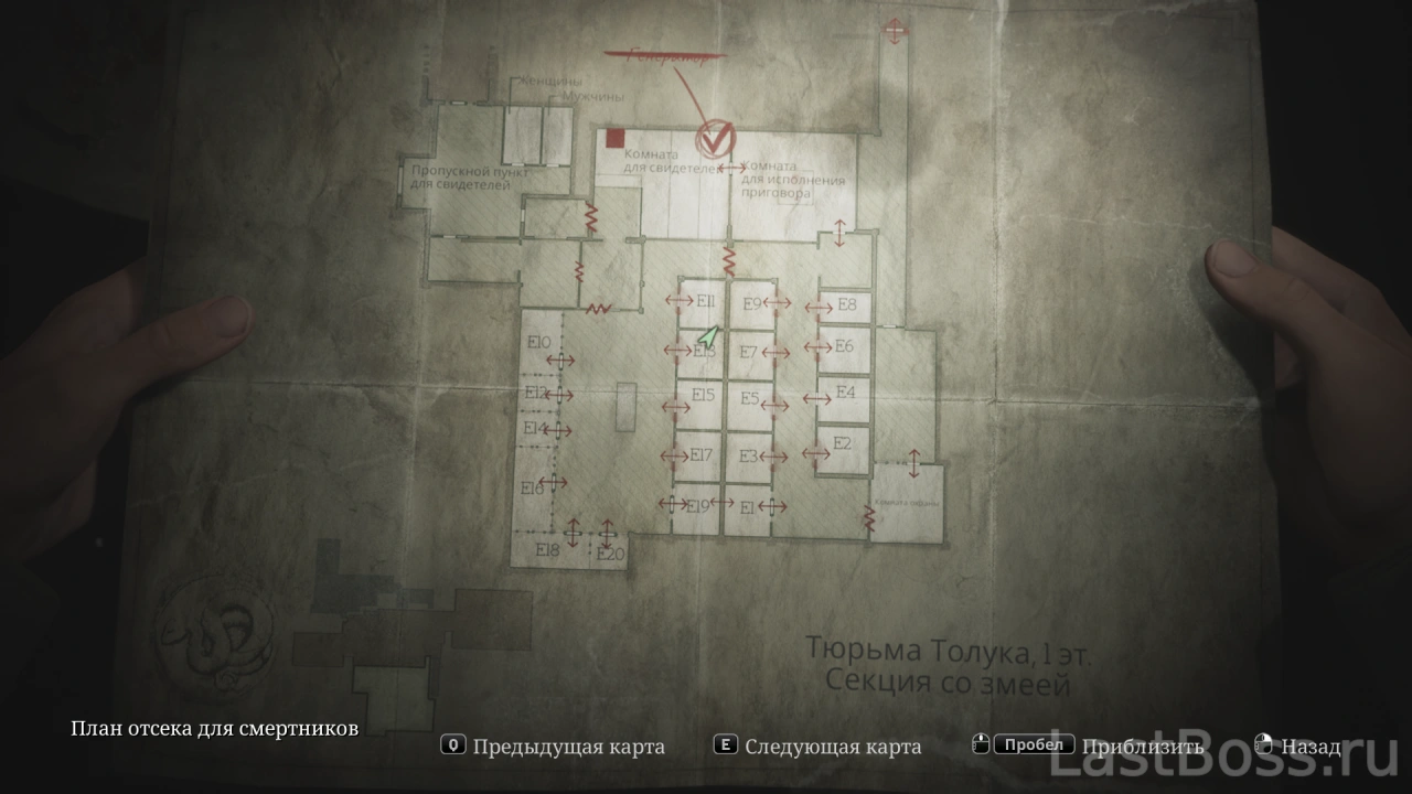 После перегрузки генератора в комнате для свидетелей в секции со змеей тюрьмы Толука, ищи фотографию в камере E13.