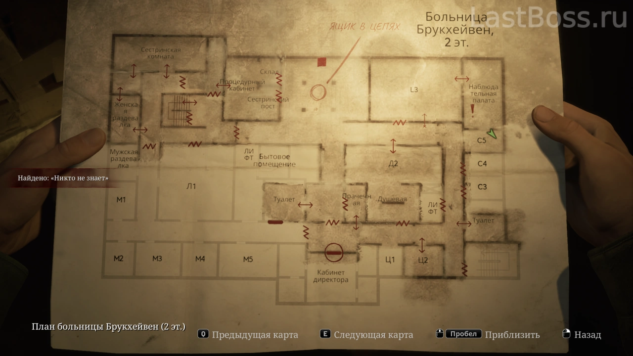 В альтернативной версии больницы Брукхейвен заходи в комнату С5 на втором этаже и открой ящик тумбочки. Ты будешь проходить там на выходе из наблюдательной палаты. После открытия ящика в цепях эта часть больницы станет недоступной.