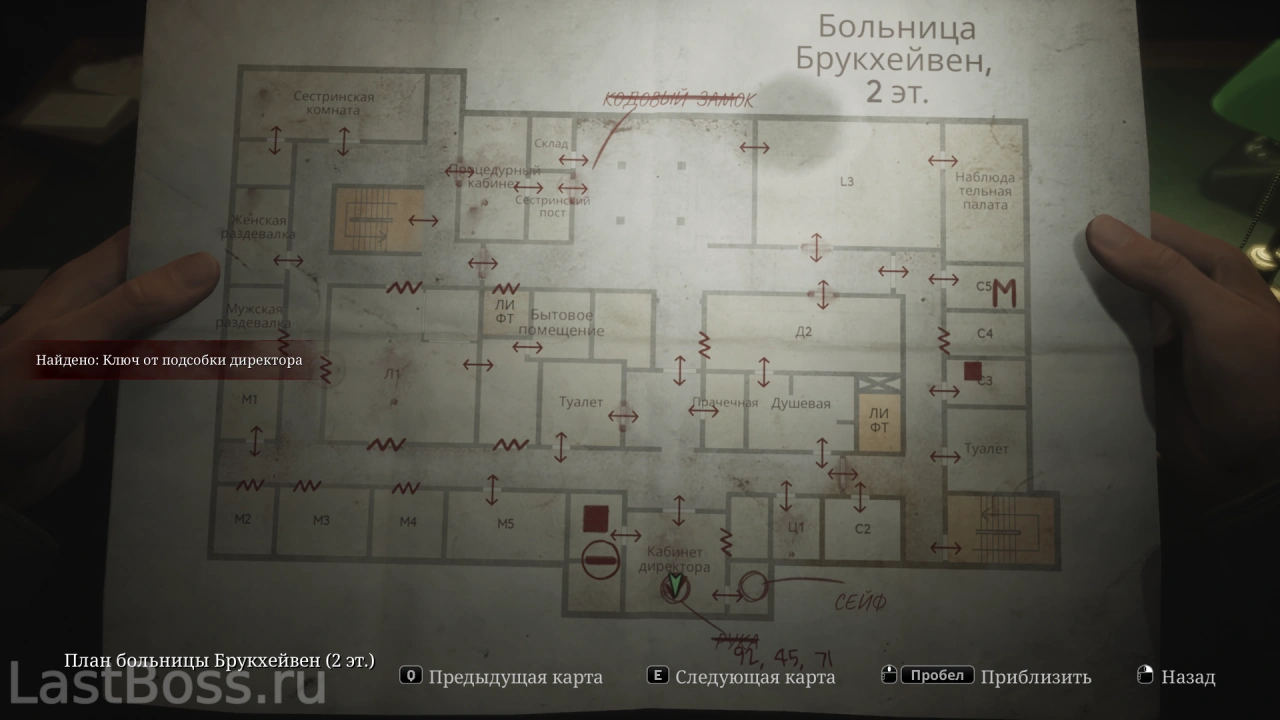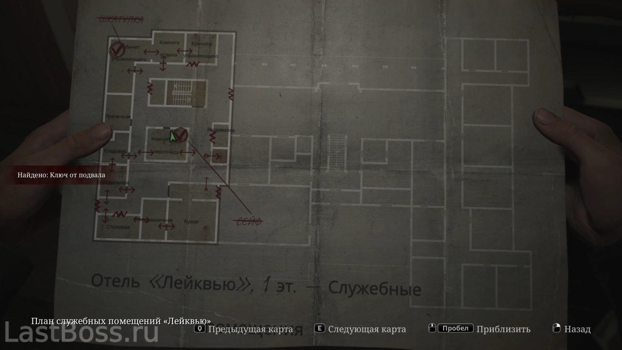 В секции с кабаном пройди через санчасть — ключ лежит на столе в заднем офисе.