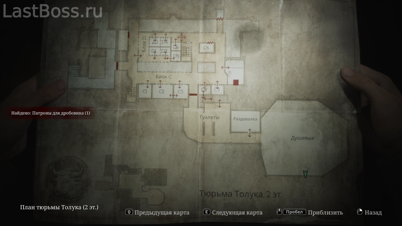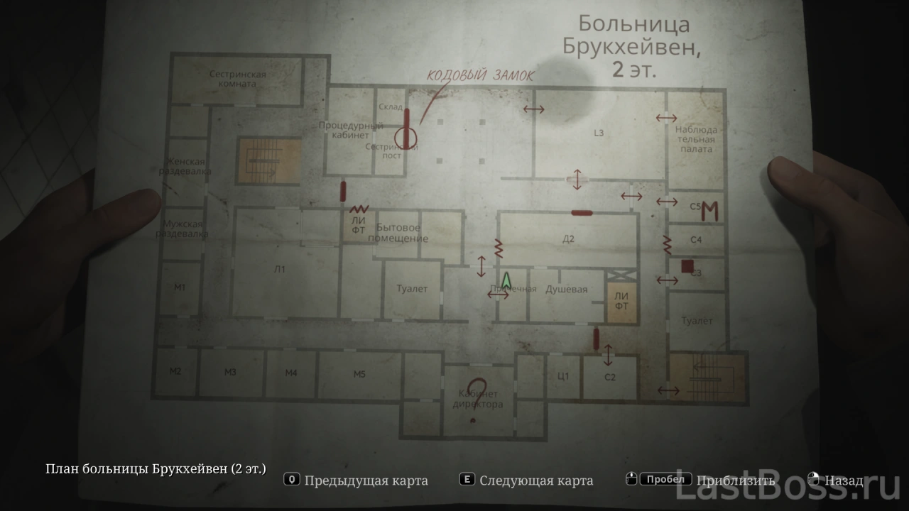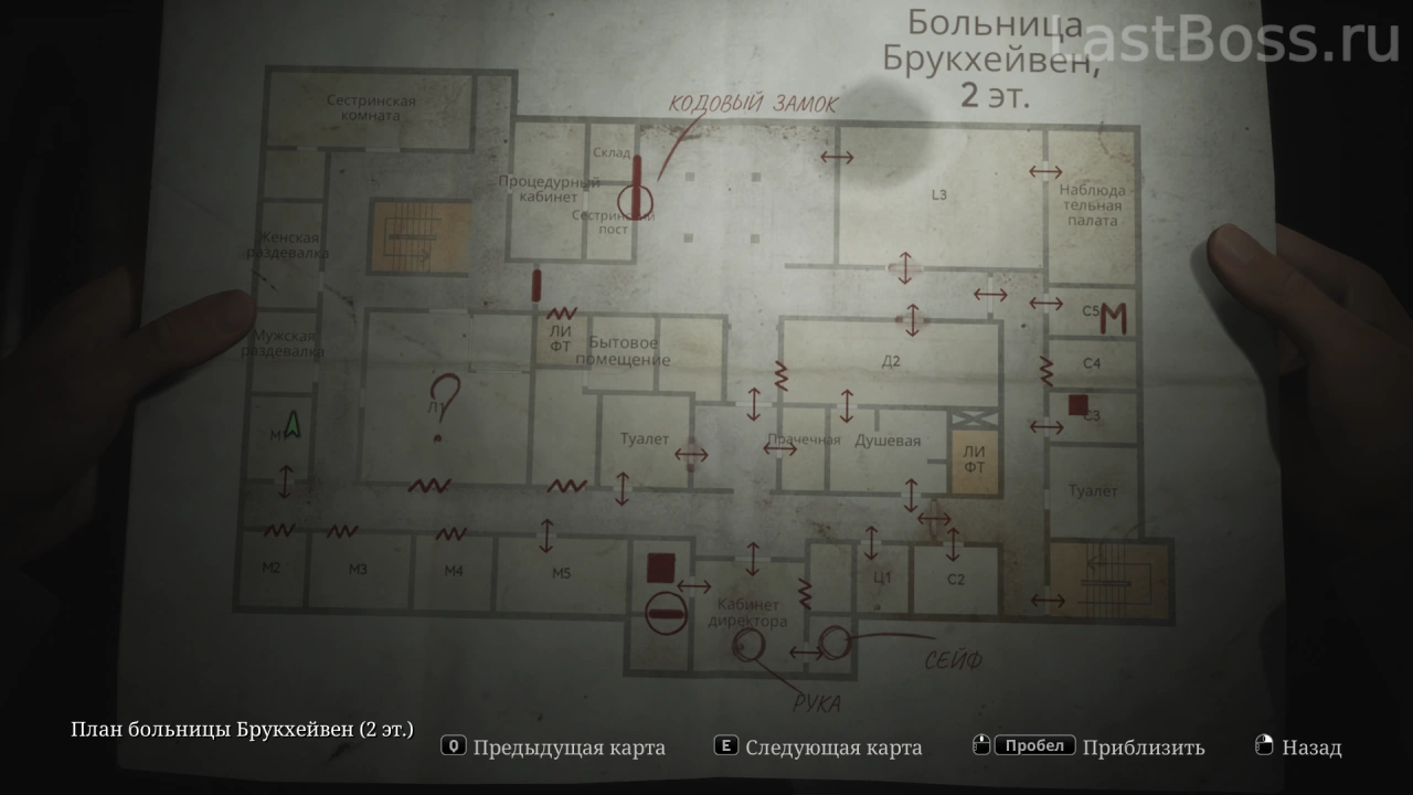 Когда доберешься до медицинского архива на первом этаже больницы Брукхейвен, осмотри пишущую машинку в углу. Сломанная фиолетовая карта рядом с машинкой — эт один из двух ключей, которые нужно было найти для открытия ящика в оригинальном SH2.