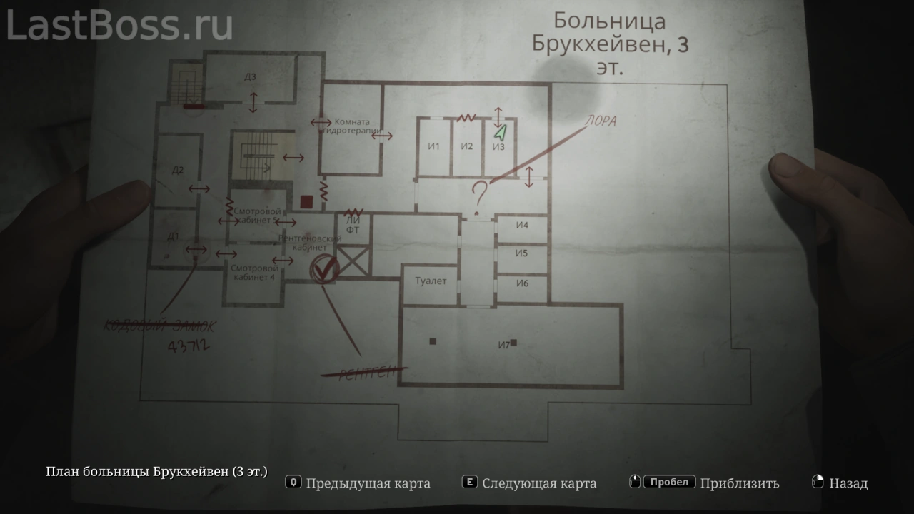 Прежде чем искать Лору в психиатрическом отделении Брукхейвена, проверь камеру И3 — на стене за дверью видны выцветшие пятна. Это может быть отсылка к знаменитому коду «кровавая стена» из оригинала. Времени для поиска этого отзвука очень мало — легко пропустить.