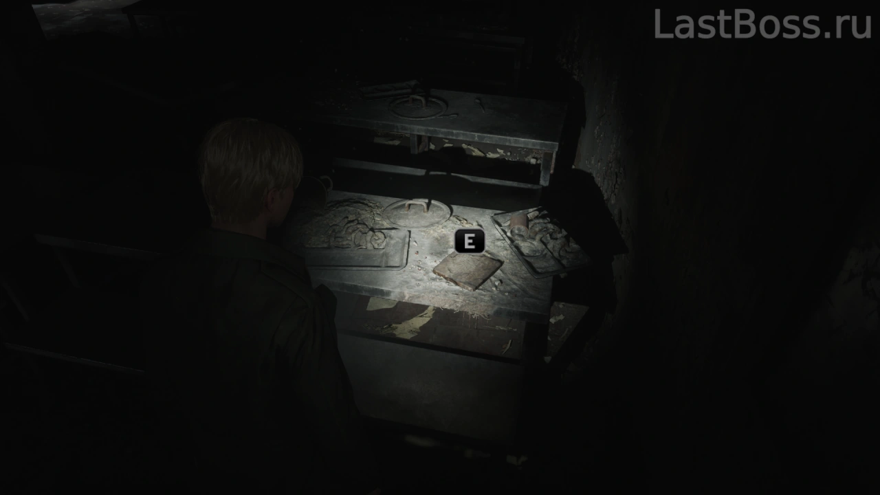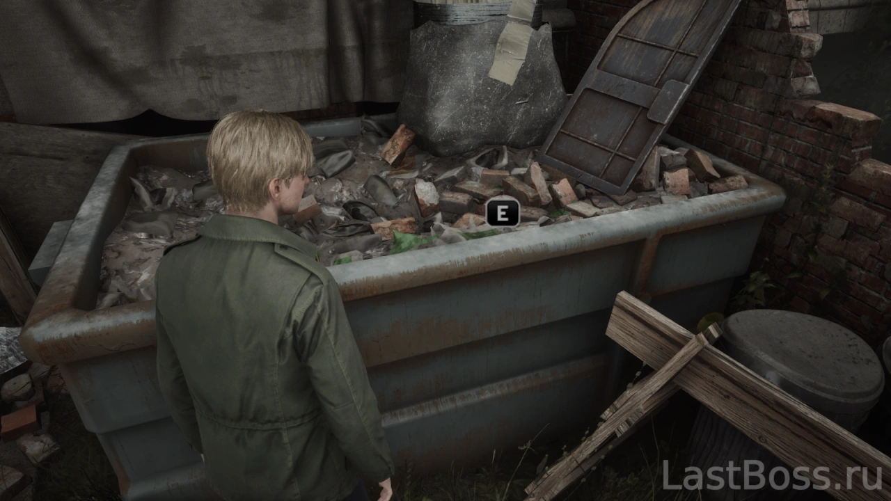 Сразу после выхода из Ранчо Сайлент Хилла осмотри хлипкий деревянный забор у входа в туннель. Здесь Джеймс подбирал деревянную доску в оригинальной игре.