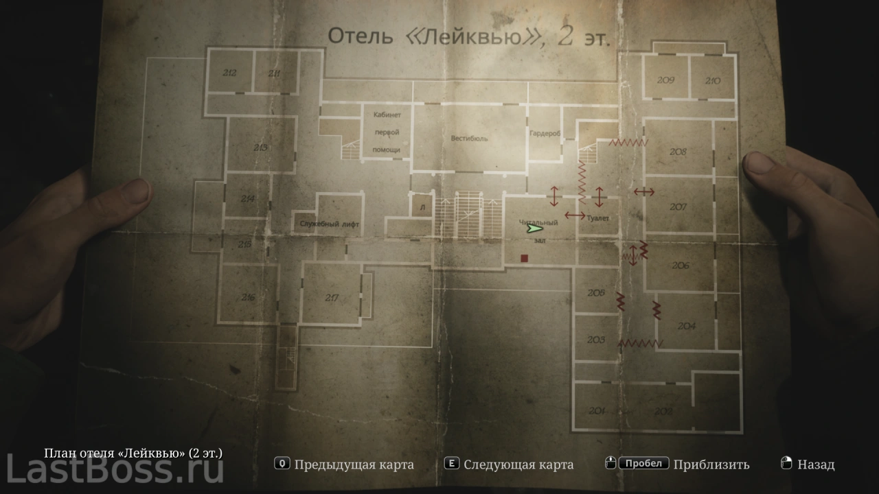 Возвращаясь через разрушенный отель, проверь диван в читальном зале. Это последний взгляд в прошлое в игре. Прослушивание записи было важным фактором для определения концовки в оригинальном SH2.