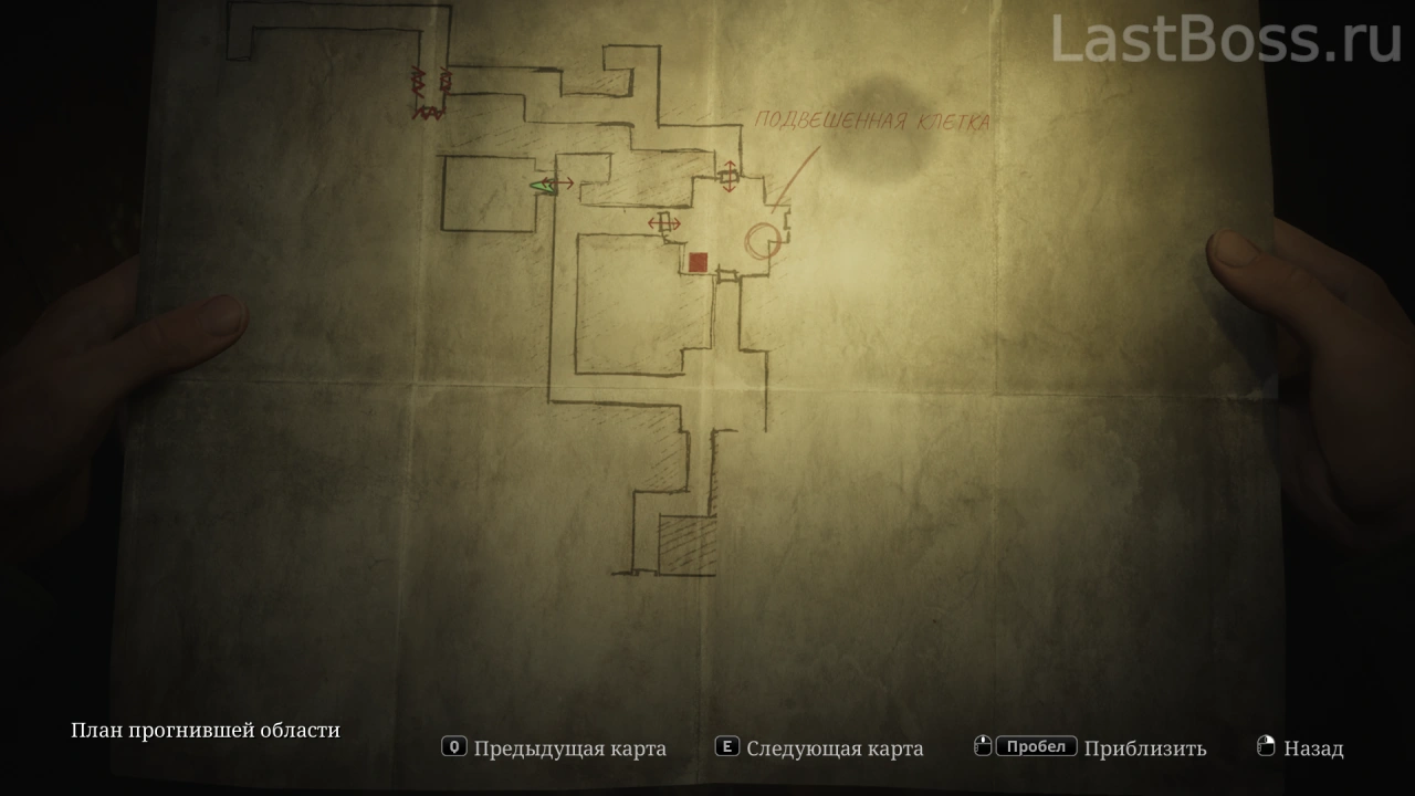 С западной стороны прогнившей области в Лабиринте ищи слабое место в стене. Сломай её и осмотри большую клетку с перерезанной петлей — это отсылка к головоломке виселицы из оригинального SH2.
