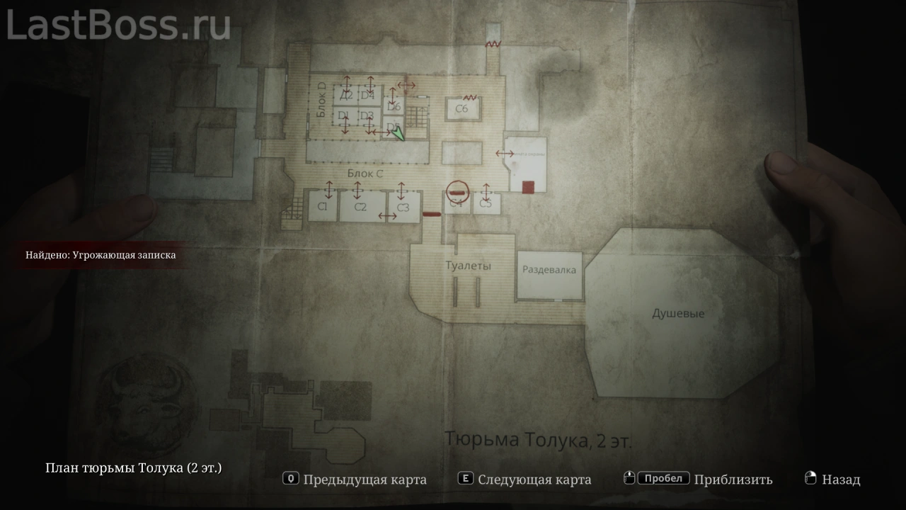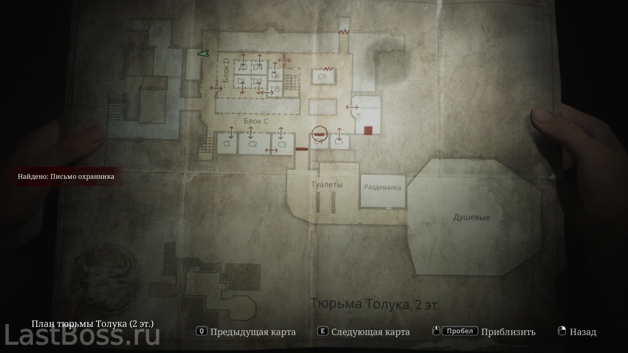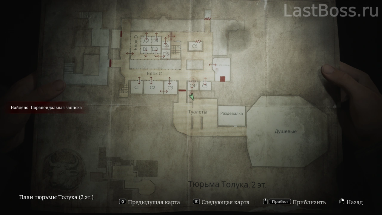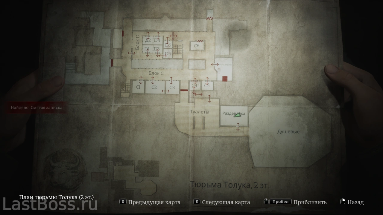Открой камеру C4 и через отверстие в стене доберись до техобслуживания. Записка лежит на трубe.