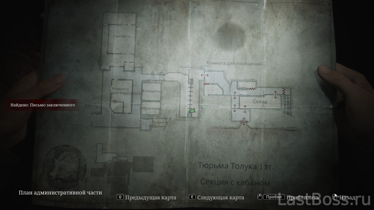 После прохождения через санчасть возьми записку с одного из столов в задней комнате.