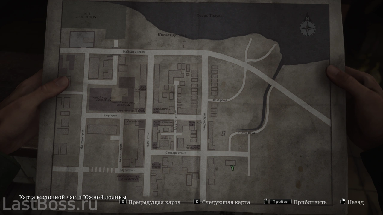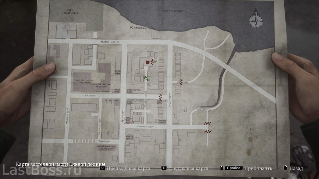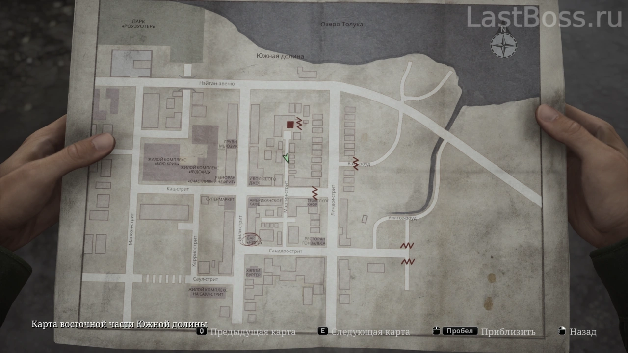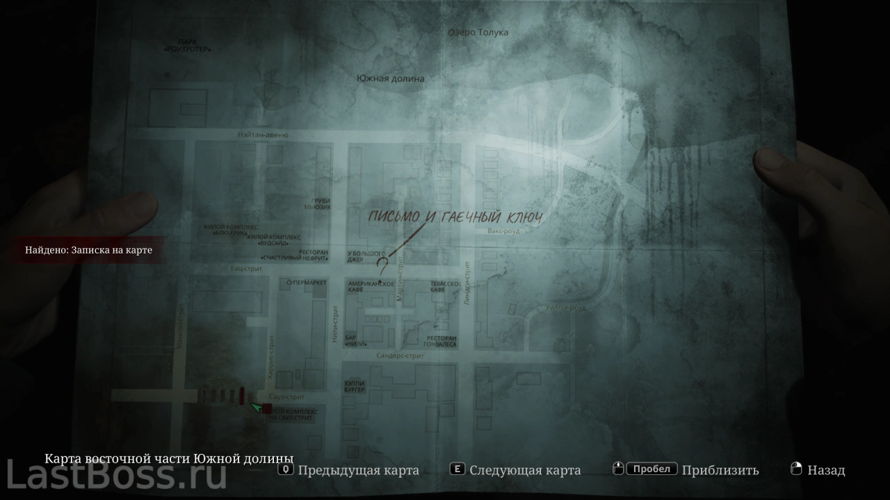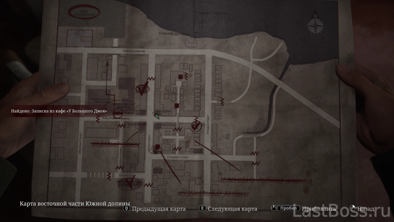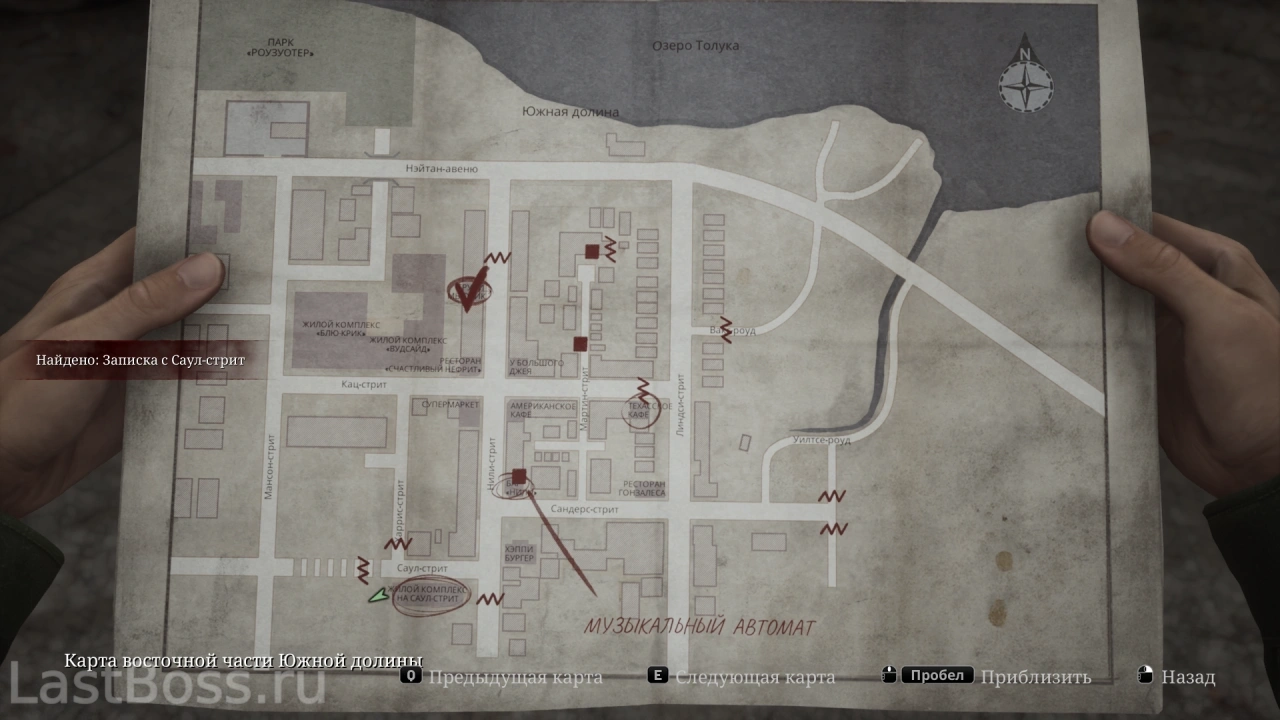 В центре восточной стороны Южной Долины. В кафе У Большого Джея, которое отмечен на карте и открыто, записка лежит на столе.