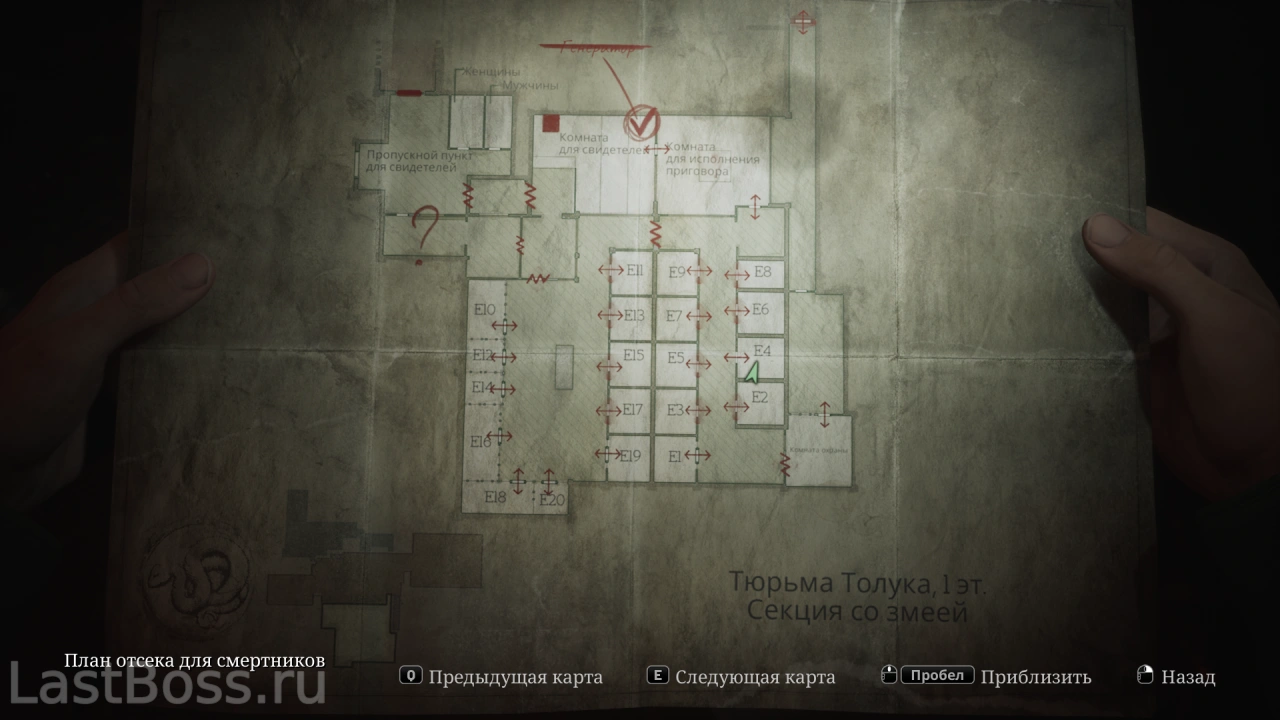 Когда впервые попадаешь в секцию со змеей, только одна камера открыта - Е4. Фото лежит на койке.